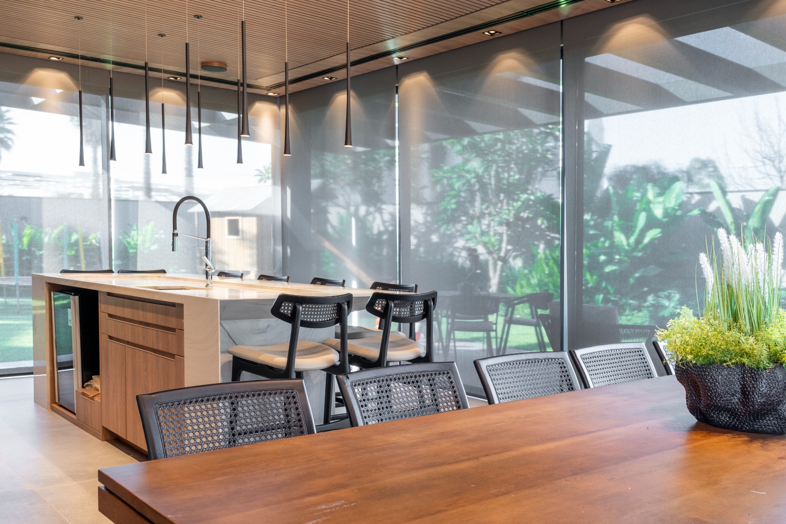 Com alto desempenho no controle de luz e calor, a tela solar proporciona maior conforto térmico e visual. Além de funcional, o tecido assume também o caráter de peça decorativa, agregando valor e beleza aos ambientes